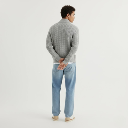 Das dezente Zopfmuster verleiht Struktur, der halblange Reißverschluss einen modernen Twist.